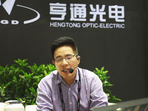 Photo: Mr. Sun, the General Manager of Hengtong Optic-electric is giving an interview to journalists from industrial medias.
